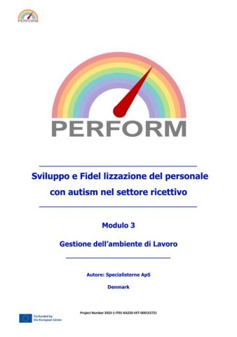Sviluppo e Fidel lizzazione del personale con autism nel settore ricettivo Modulo 3 Gestione dell’ambiente di Lavoro Autore: Specialisterne ApS Denmark Project Number 2023-1-IT01-KA220-VET-000152721