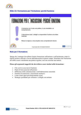 Spiega che i manager dovrebbero fornire formazione sull'autismo e sull'inclusione e tutte le