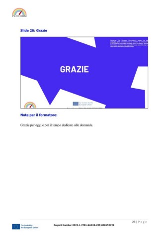 Slide 26: Grazie Note per il formatore: Grazie per oggi e per il tempo dedicato alle domande. 26 | Pa ge Project Number 2023-1-IT01-KA220-VET-000152721