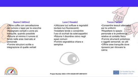•Offrire cuffie con cancellazione •Utilizzare luci soffuse e regolabili •Consentire tessuti alternativi