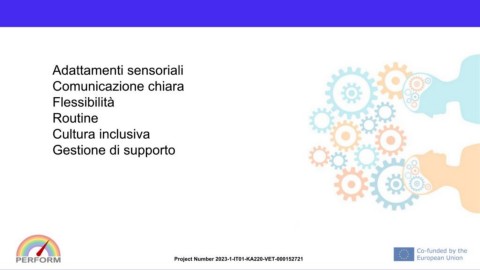 Adattamenti sensoriali Comunicazione chiara Flessibilità Routine Cultura inclusiva Gestione di supporto Project Number 2023-1-IT01-KA220-VET-000152721