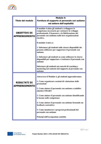 Titolo del modulo Fornitura di supporto al personale con autismo