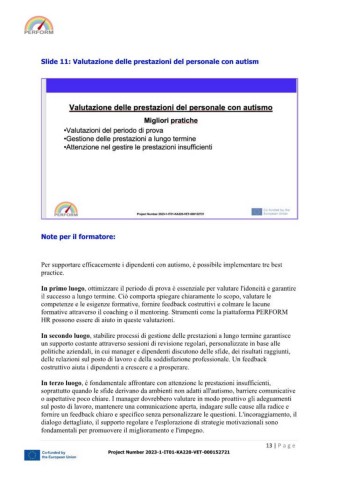 Slide 11: Valutazione delle prestazioni del personale con autism
