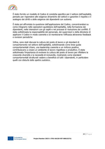 È stato fornito un modello di Codice di condotta specifico per il settore dell'ospitalità,