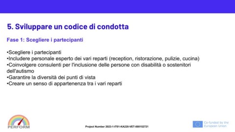 •Coinvolgere consulenti per l'inclusione delle persone con disabilità o sostenitori