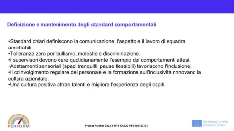 •Il coinvolgimento regolare del personale e la formazione sull'inclusività rinnovano la