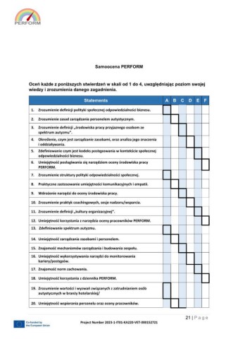 12. Umiejętność korzystania z narzędzia oceny pracowników PERFORM.