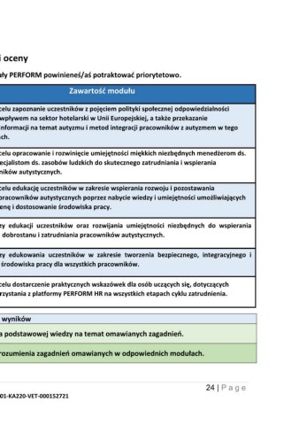 Moduł 1: Autyzm w europejskiej polityce biznesu oraz jej wpływem na sektor hotelarski w Unii Europejskiej, a także przekazanie