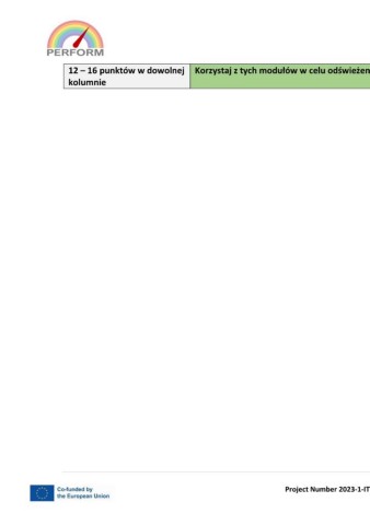 12 – 16 punktów w dowolnej  Korzystaj z tych modułów w celu odświeżenia i utrwalenia wiedzy dotyczącej omawianych zagadnień.
