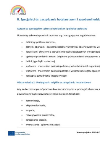 B. Specjaliści ds. zarządzania hotelarstwem i zasobami ludzkimi – obszary wiedzy