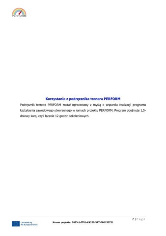 Podręcznik trenera PERFORM został opracowany z myślą o wsparciu realizacji programu