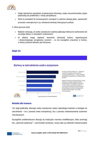 Ten slajd podkreśla, dlaczego osoby autystyczne często napotykają trudności w dostępie do