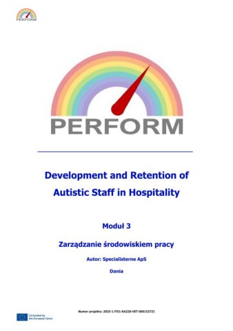 Development and Retention of Autistic Staff in Hospitality Moduł 3 Zarządzanie środowiskiem pracy Autor: Specialisterne ApS Dania Numer projektu: 2023-1-IT01-KA220-VET-000152721