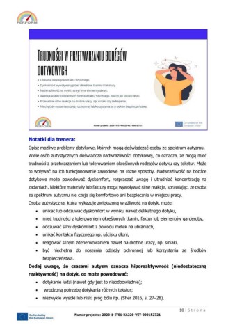 zadaniach. Niektóre materiały lub faktury mogą wywoływać silne reakcje, sprawiając, że osoba