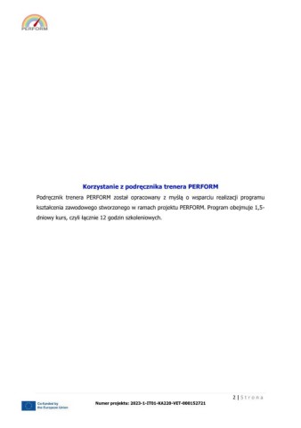 Podręcznik trenera PERFORM został opracowany z myślą o wsparciu realizacji programu
