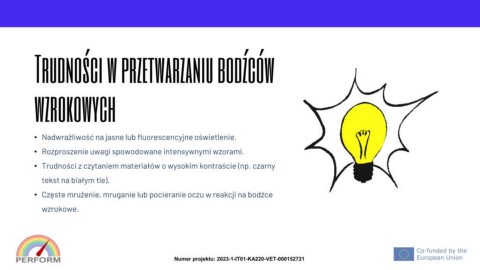 • Trudności z czytaniem materiałów o wysokim kontraście (np. czarny