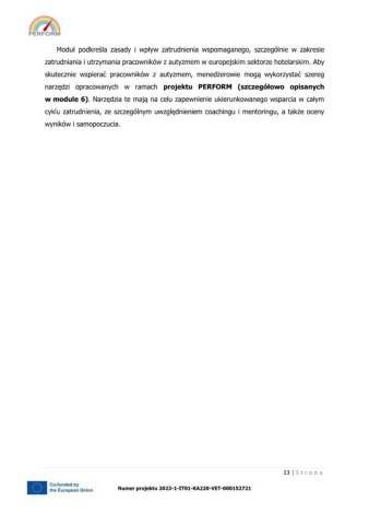 Moduł podkreśla zasady i wpływ zatrudnienia wspomaganego, szczególnie w zakresie