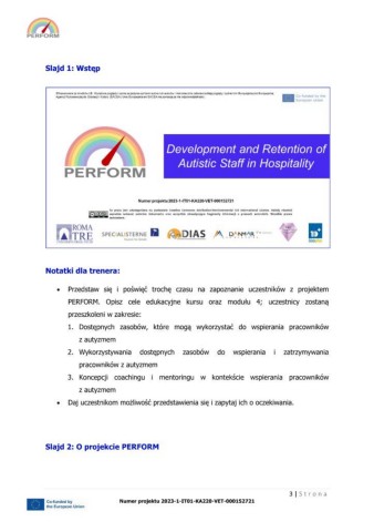 PERFORM. Opisz cele edukacyjne kursu oraz modułu 4; uczestnicy zostaną