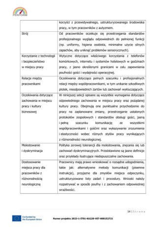(np. uniformy, higiena osobista, minimalne użycie silnych