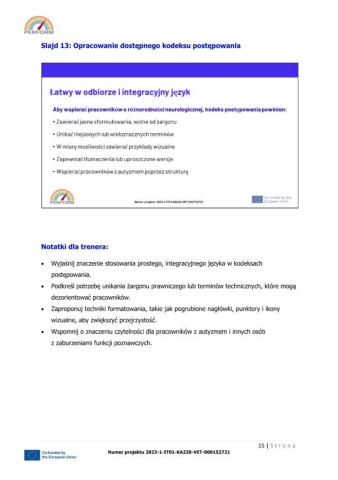 Slajd 13: Opracowanie dostępnego kodeksu postępowania