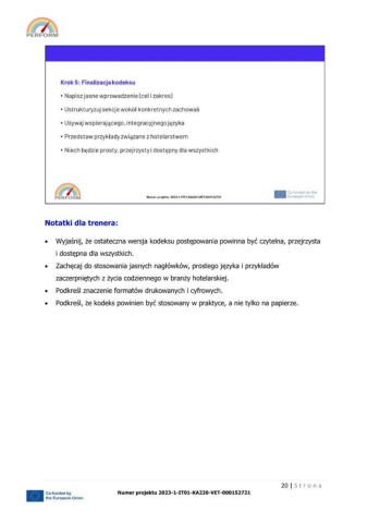 Wyjaśnij, że ostateczna wersja kodeksu postępowania powinna być czytelna, przejrzysta