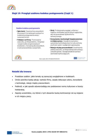 Slajd 19: Przegląd szablonu kodeksu postępowania (Część 1)
