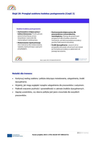 Slajd 20: Przegląd szablonu kodeksu postępowania (Część 2)