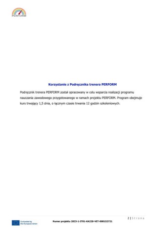 Podręcznik trenera PERFORM został opracowany w celu wsparcia realizacji programu