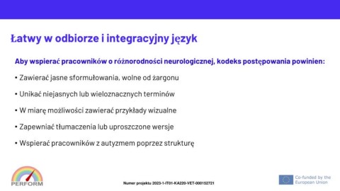 Aby wspierać pracowników o różnorodności neurologicznej, kodeks postępowania powinien: