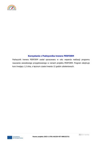 Podręcznik trenera PERFORM został opracowany w celu wsparcia realizacji programu